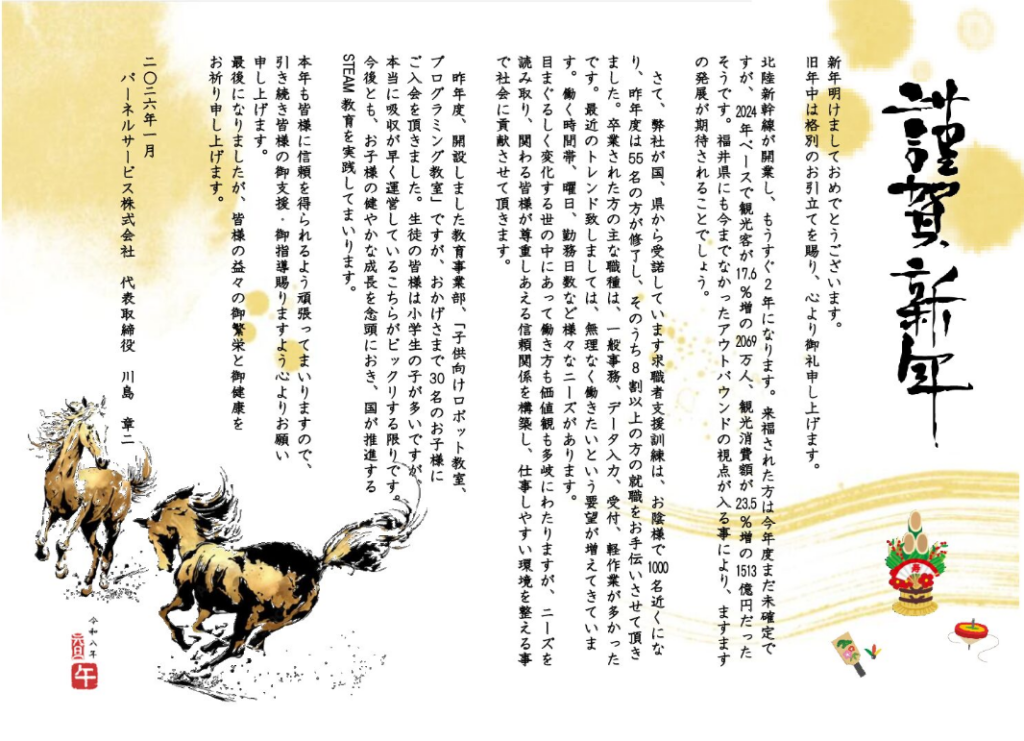 令和8年 新年のご挨拶 あけましておめでとうございます 本年もよろしくお願い申し上げます https://www.personnel-service.com/wordpress/wp-content/uploads/2025/12/2026.01.pdf